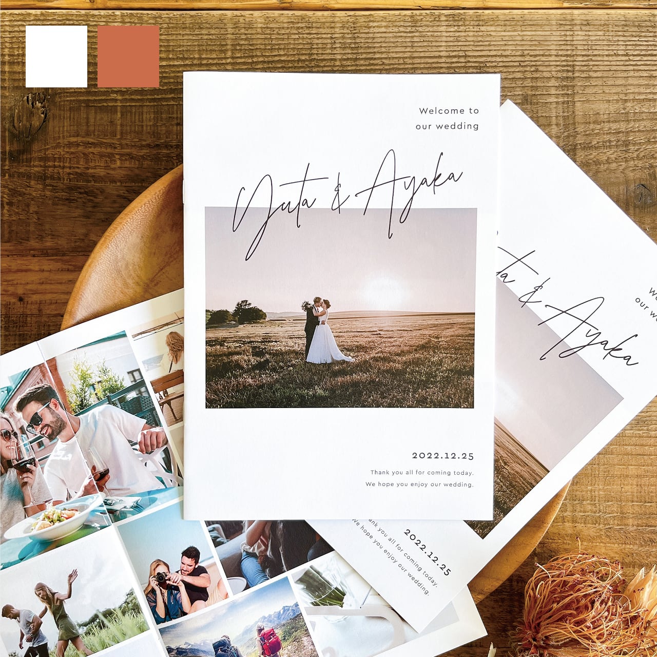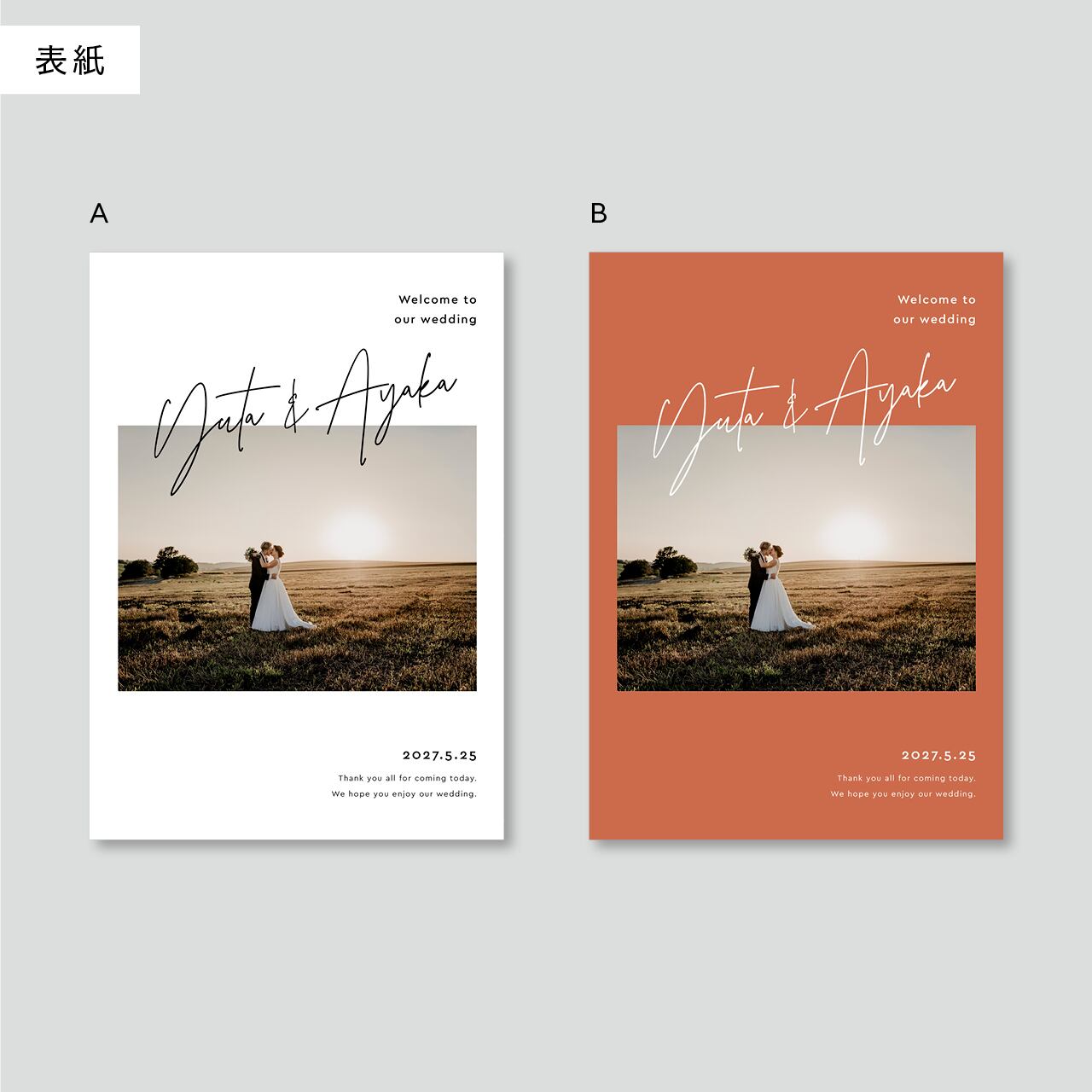 ・修正は5回程度を想定しております。複数回のイメージ的な修正や、大幅な修正が発生した場合につきましては、追加料金を頂戴する場合がございます。(席次表やメニューなど文字の変更はこの限りではございません。)