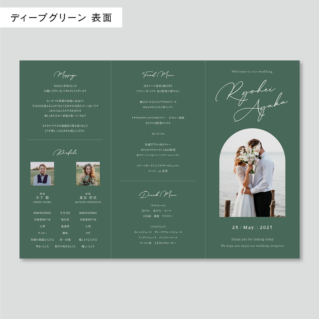 ご挨拶・プロフィール・メニュー表・席次表